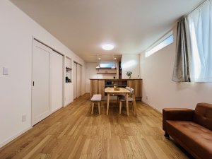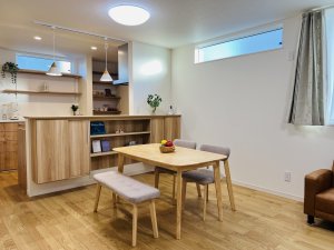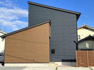 ネイビーを基調とした外壁に、ブラウンの外壁がアクセントになっており、シックで落ち着いた外観になっております。無駄のない動線はもちろん、気密性を重視したことにより各部屋との温度差はほとんどなく、快適に過ごすことができます。また、遮音性が高いということも嬉しいポイントです。高性能の換気システムにより、室内の空気はいつでも綺麗に維持されているため、快適な室内環境になります。省エネや快適性を重視する方にとっては、最適なお家です。