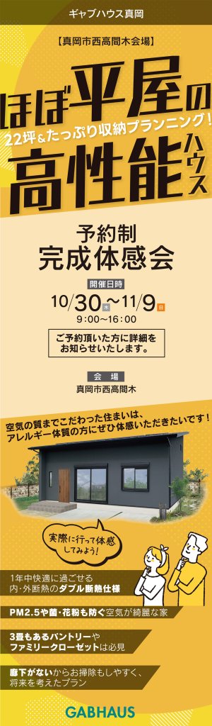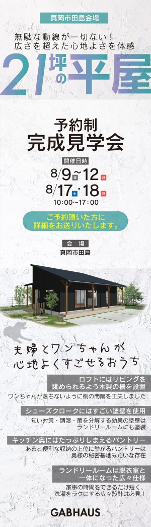 真岡市田島で、21坪の平屋の予約制完成見学会を開催致します。