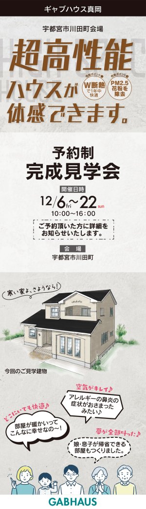 宇都宮市川田町で、超高性能ハウスが体感できる[予約制]完成見学会を開催致します。