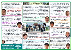 お正月恒例の「2025年今年の抱負」です。今年も社員一同、張り切って皆様の住まいのかかりつけ医になれるよう努力していく所存でございます。どうぞよろしくお願い申し上げます。