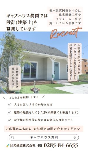 ギャブハウス真岡は、栃木、真岡、下野、河内郡上三川町、下都賀郡壬生町で新築の家づくりをしています。