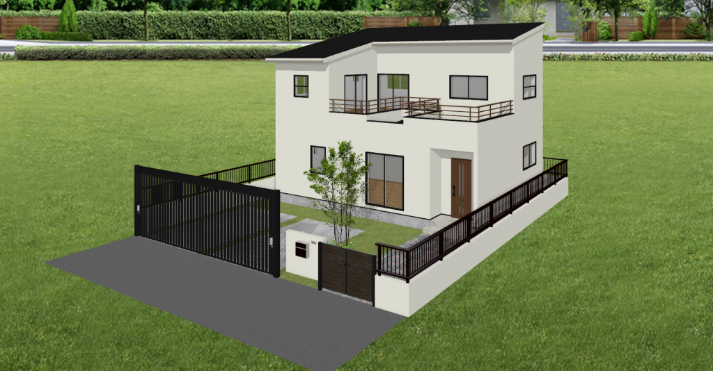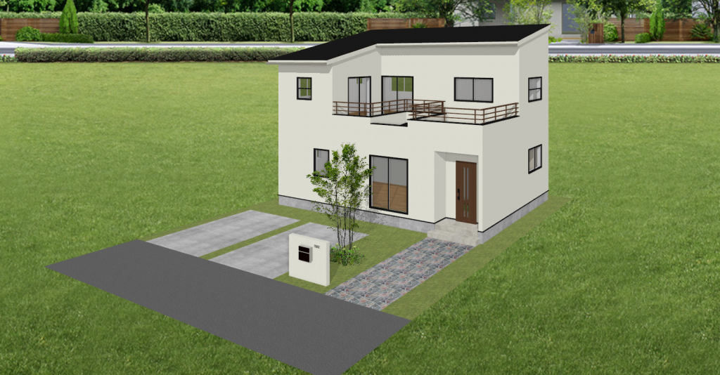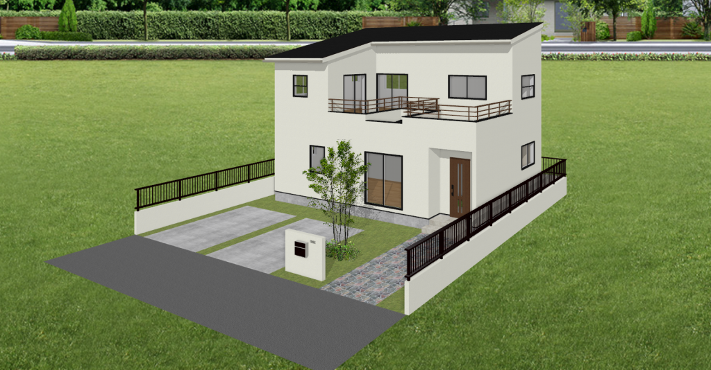 オープン外構は敷地のまわりにフェンスや壁を設けず、敷地と道路や隣地との間を遮るものがないため明るく開放的な印象になります。